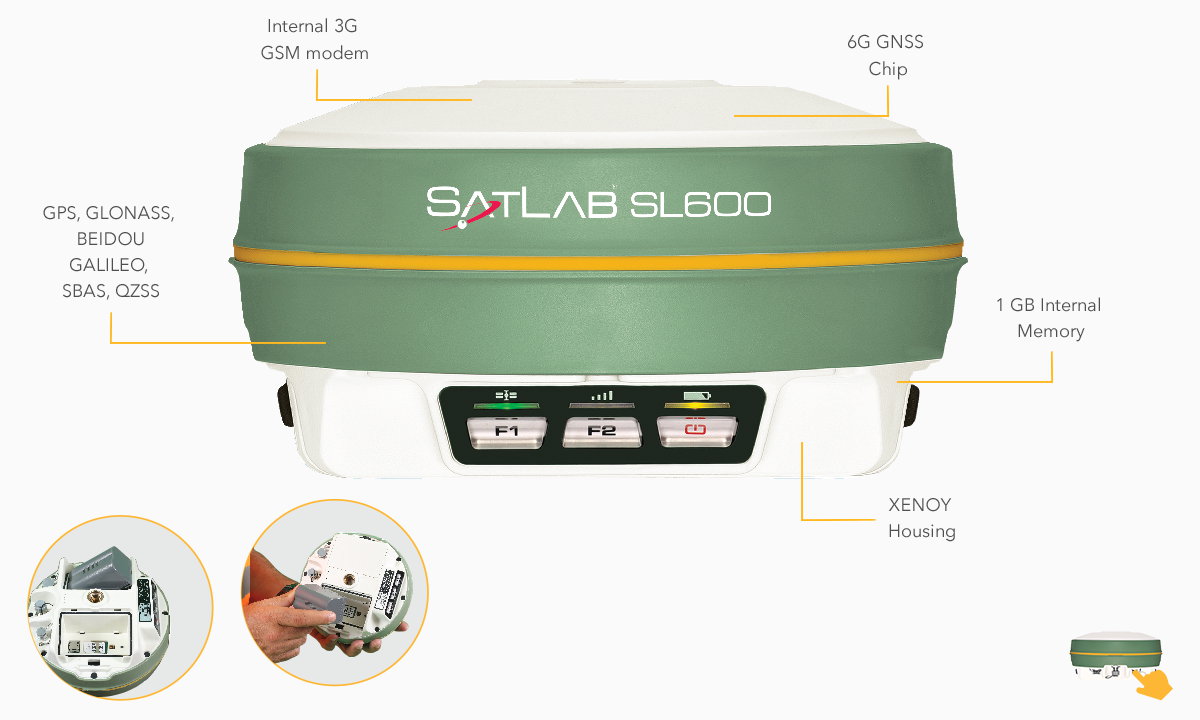 Statyka, VRS lub stacja pojedyncza RTK, radio RTK - wszystkie tryby pracy geodezyjnej i we wszystkich programach pomiarowych są możliwe. Wielo częstotliwościowy modem GSM pozwala na odbieranie wszystkich możliwych serwisów sieci komórkowych na całym świecie, dając pewność , że SatLab SL600 może połączyć się z każdą istniejącą siecią NTRIP. Co więcej można robudować urządzenie o opcjonalne 2W radio UHF, które jest kompatybilne z każdym standaryzowanym protokołem radiowym.