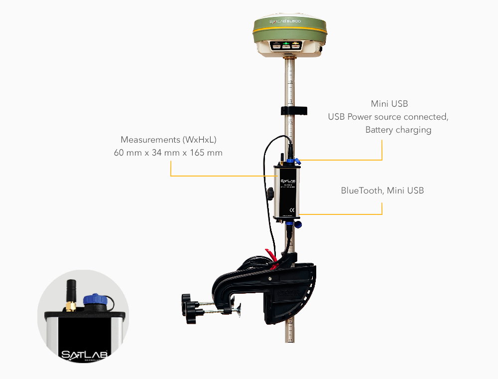 Do współpracy z echosondą polecamy np. odbiornik Satlab SL-300 z oprogramowaniem Carlson SurvCE. W tym urządzeniu precyzyjny odbiornik GNSS znajduje się w jednej obudowie z rejestratorem.