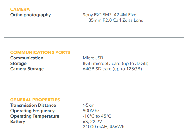 Wysoce zautomatyzowany UAV z  PPK dużego zasięgu zdolny nawet do 70 min. lotu przy prędkości 80 km/h.