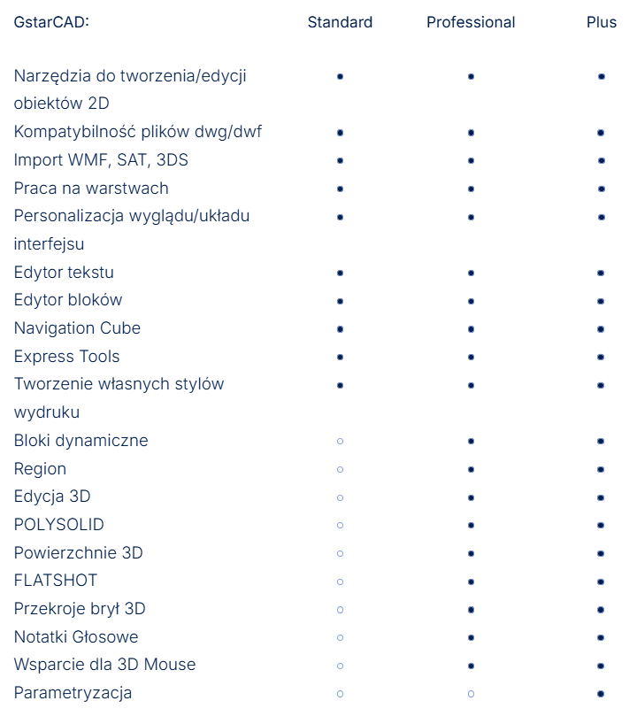 Zawiera wszystkie funkcjonalności GstarCAD Professional.